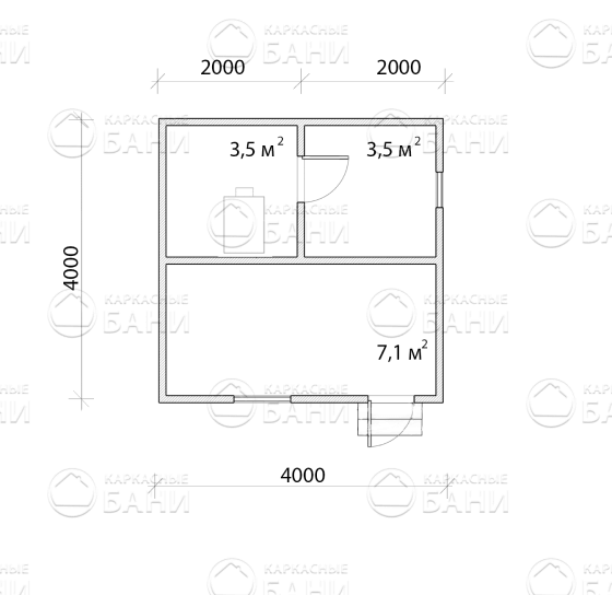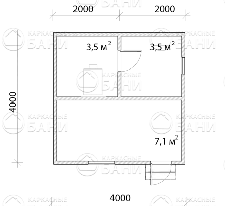 Металлическая, с топкой из предбанника, встроенная, с баком на трубе 60 литров, дымоход двухконтурный (сэндвич), комплект пожаробезопасности