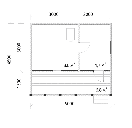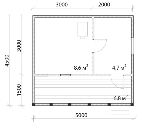 Металлическая, с топкой из предбанника, встроенная, с баком на трубе 60 литров, дымоход двухконтурный (сэндвич), комплект пожаробезопасности
